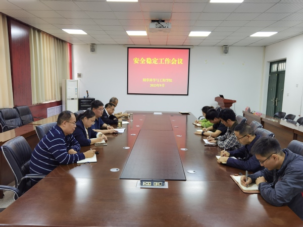 9月25日,烟草科学与工程学院在401会议室召开安全稳定工作会。学院领导班子成员、科级干部和辅导员参加了会议。会议由学院党总支书记安小宇主持。