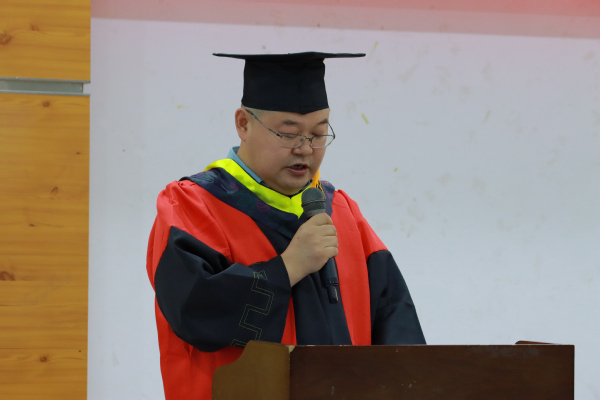 我院2024届研究生毕业生张弛、本科毕业生于小玉代表毕业生发言。他们回忆了在学校的点点滴滴,共同表达了对母校的感恩、眷恋与不舍,也喊出了无憾青春的铮铮誓言,表示将把校训“为之则易不为则难”作为自己终生的座右铭,不忘初心,砥砺前行。教师代表程传玲老师发言,她深情寄语同学们要怀抱梦想、脚踏实地,敢想敢为、善作善成,投身伟大事业,成就精彩人生。