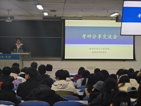 为帮助低年级学生激发学习动力,科学规划考研路径、明确备考方向,3月18日,烟草科学与工程学院在三教楼202举办考研经验分享交流会,邀请3位优秀考研学子分别为23、24级学生开展经验分享。